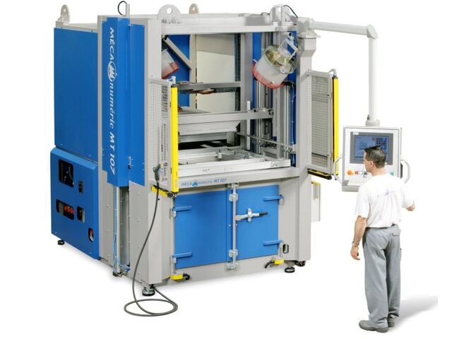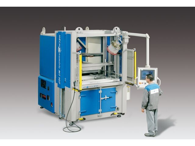 Mold Holder : steel welded mold holder with removable plate. Transmission through 4 pneumatic rams with a synchronization system between rack and pinion