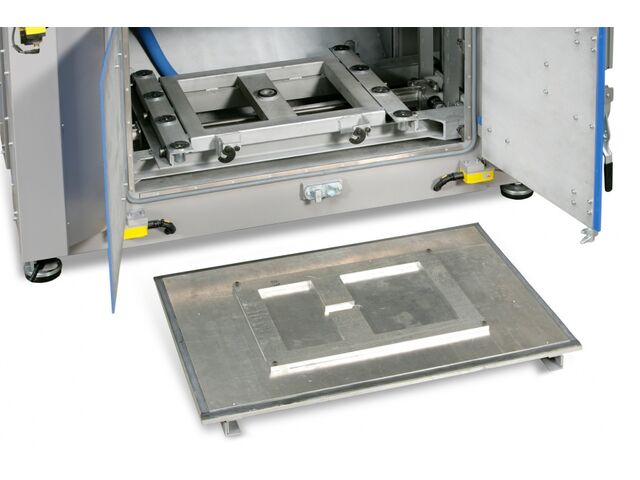 Blowing box : steel welded vacuum proof box. Front doors with basquili. Lateral and back access by screwed vacuum proof trapdoors. Temperature box controlled by a thermostatic sensor.