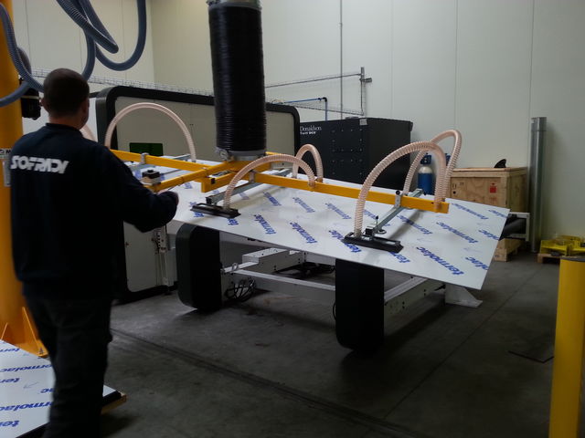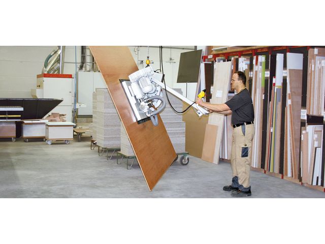 Thanks to an air-vacuum system created at the suction cups (gripping tools), Aero Flat to Flat is a very efficient manipulator of non-porous loads, allowing operators to work independently on lifting panels. A single person can thus quickly move up to 2 tonnes, multiplying productivity by a factor of ten.