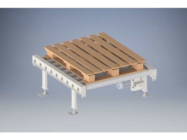 “ This conveyor can be integrated into an existing pallet handling line. It is also possible to integrate this conveyor in a new handling line. This roller conveyor is fully automated thanks to its electric motor. ”