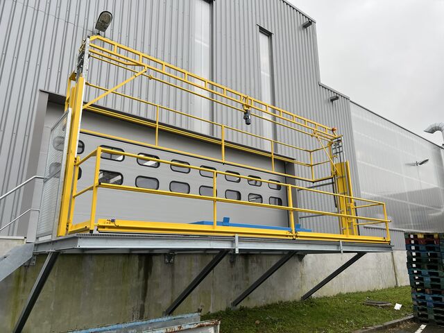 It is very useful for workstations with little depth. Once the loads deposited, the operator slides the gate and closes the access to the edge of the platform. The whole surface is safe and the operator can pick up the loads without any risk.