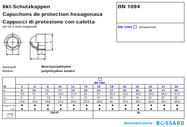 Visserie Nylon : Cache Ecrou Polyéthylène Noir