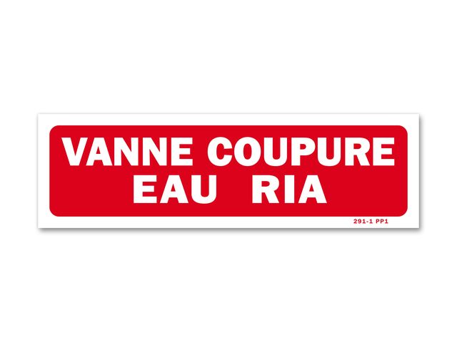 This rectangular sign informs of the presence and location of a "water shut-off valve". Its red color makes it visible from a distance.