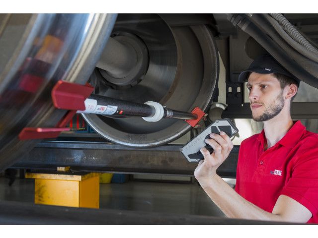 The non-contact Calipri C4x series with rolling stock measurement modules meets the rail industry's need for a simple profile gauge with user-independent results for complete wheelset testing. CALIPRI stands for multifunctionality all along the line. The non-contact measuring technology allows the inspection of wheel profile, wheel diameter, brake disc and back-to-back distance with one and the same measuring device. The patented CALIPRI principle automatically corrects user errors and thus leads to reproducible measurement results. The measuring system consists of a sensor and a tablet PC for defining the measuring sequence and entering limit values. Tolerances that are exceeded are indicated to the user by a traffic light system. The measurement data can then be printed or exported as a report. Two versions are available: Calipri C42 for heavy rail vehicles and Calipri C41 for light rail vehicles.