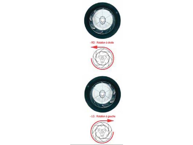 Wheel with backward curved and welded blades, single and double flow, out of galvanized or stainless steel or aluminium, low and middle pressure, 85% maximum efficiency with ca.