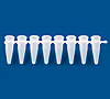 White, 0,2 ml-vessels. The use of real-time PCR (qPCR) is becoming increasingly widespread. The new line of white PCR products by BRAND offers significantly better results in this application than transparent 8-tube strips. The strips are uniformly colored with titanium dioxide, so that in combination with the smooth surfaces, the optimum reflection of the fluorescence signal is provided.