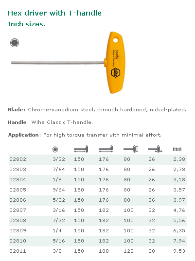 Wiha : WIHA- Clés Mâles - Clés Mâles Classiques, en Pouces - Clé Mâle Six Pans avec Manche en T Classic