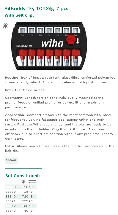 Wiha : WIHA- Embouts - Coffrets d'Embouts - BitBuddy de 49, 7 pièces Mélangées Embouts MaxxTor TORX