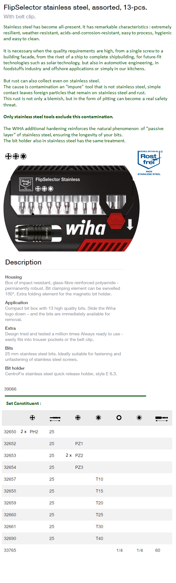 Wiha : WIHA- Embouts - Embouts Inox - FlipSelector Acier Inoxydable Mélangé, 13 pièces