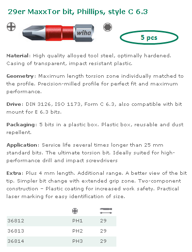 Wiha : WIHA- Embouts - Embouts Maxxtor - Embouts MaxxTor de 29 Phillips forme C 6,3