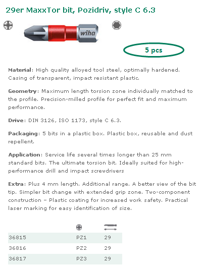 Wiha : WIHA- Embouts - Embouts Maxxtor - Embouts MaxxTor de 29 Pozidriv forme C 6,3
