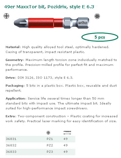 Wiha : WIHA- Embouts - Embouts Maxxtor - Embouts MaxxTor de 49 Pozidriv forme E 6,3