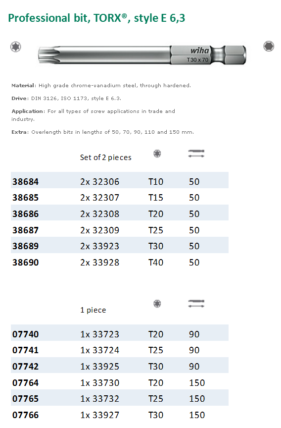 Wiha : WIHA- Embouts - Embouts Professional - Embouts Professional Grandes Longueurs TORX forme E 6,3