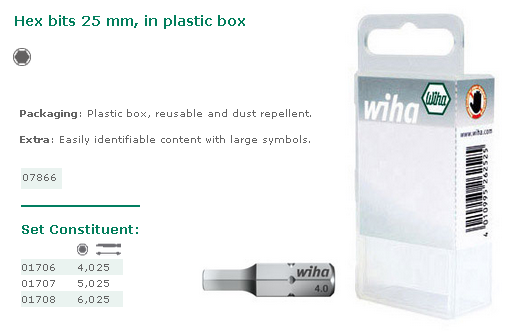 Wiha : WIHA- Embouts - Embouts Standards - Jeu d'Embouts Six Pans 25 mm