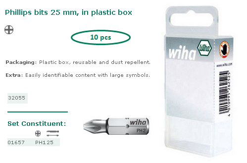 Wiha : WIHA- Embouts - Embouts Standards - Embouts Phillips 25 mm PH1