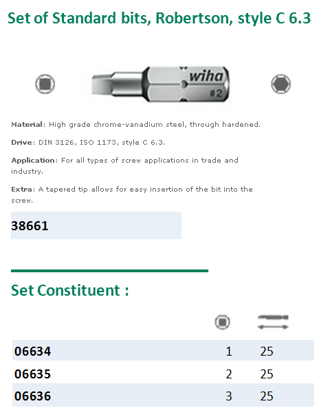 Wiha : WIHA- Embouts - Embouts Standards - Jeu d'Embouts Robertson forme C 6,3