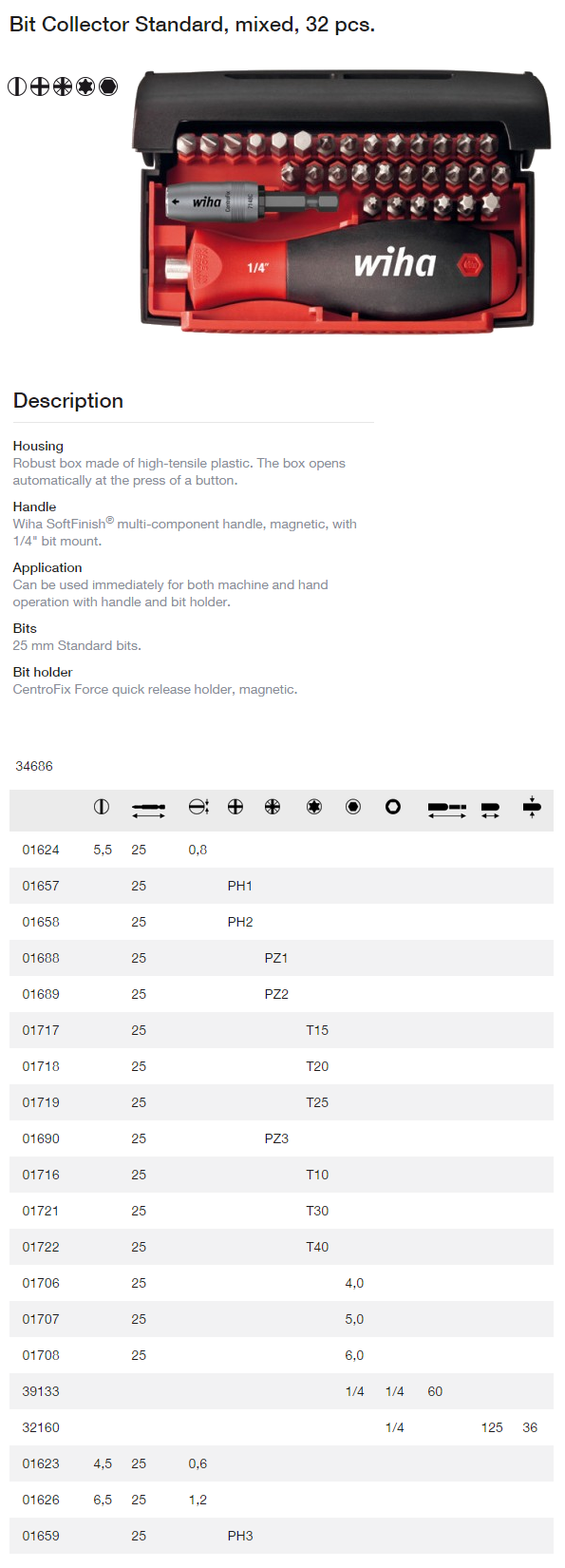 Wiha : WIHA- Embouts - Embouts Standards - Collecteur d'Embouts Standard, mélangés, 32 pièces
