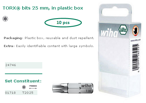 Wiha : WIHA- Embouts - Embouts Standards - Embouts TORX 25 mm T20