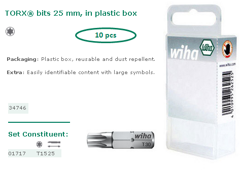 Wiha : WIHA- Embouts - Embouts Standards - Embouts TORX 25 mm T15