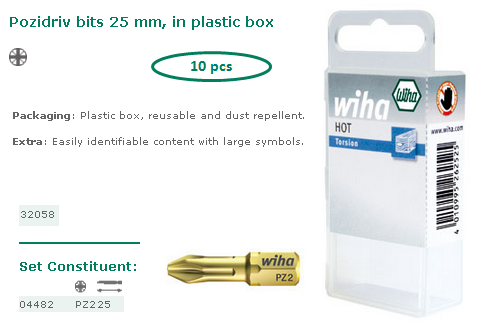 Wiha : WIHA- Embouts - Embouts Torsion Hot ou Zot - Embouts Torsion HOT Pozidriv 25 mm PZ2