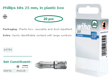 Wiha : WIHA- Embouts - Embouts Torsion Hot ou Zot - Embouts Torsion ZOT Phillips 25 mm PH2
