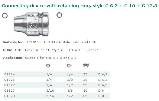 Wiha : WIHA- Embouts - Porte-Embouts - Adaptateur avec Circlip, forme G 6,3 + G 10 + G 12,5