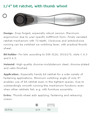 Wiha : WIHA- Embouts - Porte-Embouts - Cliquet d'Embout 1/4" avec Molette pour le pouce