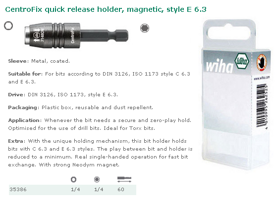 Wiha : WIHA- Embouts - Porte-Embouts - Porte-Embout à Changement Rapide CentroFix Magnétique