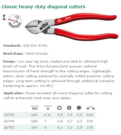 Wiha : WIHA- Pinces - Pinces Classiques - Pince Coupante Diagonale Grande Capacité Classic