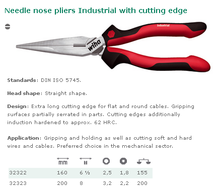 Wiha : WIHA- Pinces - Pinces Industrial - Pince Demi-Ronde Industrial avec Coupe-fils