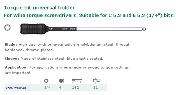 Wiha : WIHA Tournevis Dynamométriques - Lames Interchangeables Torque - Porte-Embout Universel Torque pour Tournevis Dynamométrique