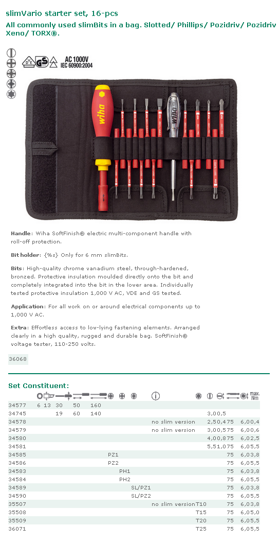 Wiha : WIHA Tournevis - Tournevis SoftFinish Electric SlimVario - Jeu SlimVario-16 pièces