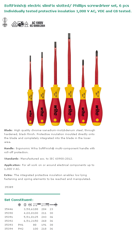 Wiha : WIHA Tournevis - Tournevis SoftFinish Electric SlimFix - Jeu de Tournevis à Fente Phillips SoftFinish Electric SlimFix-6 pièces