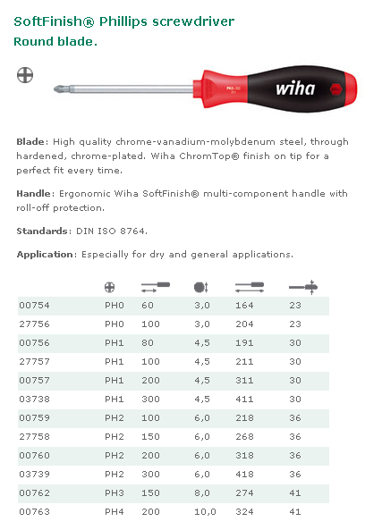 Wiha : WIHA Tournevis - Tournevis SoftFinish - Tournevis Phillips SoftFinish