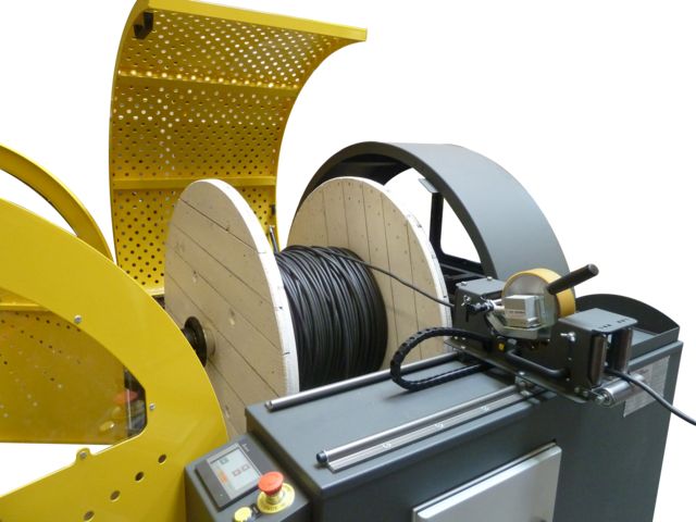 The measuring device is equipped with 4 guide rollers at the front and rear, and is mobile on a cross-winding bench for the proper arrangement of cable coils next to one another.
