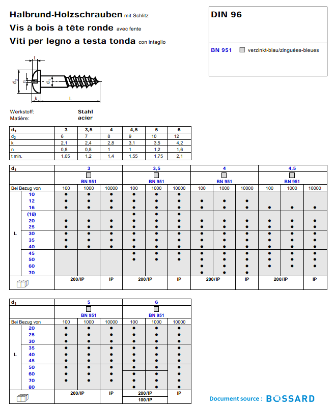 Wood Screws : Slotted Round Head Wood Screw - Slotted Round Head Wood Screw, White Zinc Steel, DIN 96