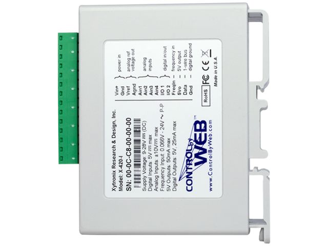 “ 2 inputs / outputs 0-5 Vdc 4 analog inputs ± 1.28V, ± 2.56V, ± 5.12V, ± 10.24V, 4-20mA Up to 16 1-Wire sensors Embedded web server, email alarms Power input: 9-28 Vdc or PoE ”