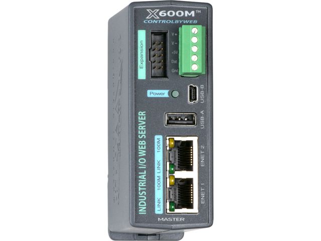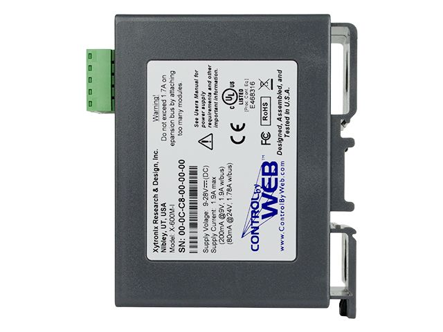 The X-600M is a web-enabled I/O controller that performs control, logic, and monitoring functions similar to that of a Programmable Logic Controller (PLC). However, unlike a PLC, the X-600M is designed for web based applications from the ground up. The X-600M can be setup, controlled, and monitored using its built-in web server and a standard web browser. The setup web pages are intuitive and easy to use and do not require special programming skills. No add-on software is required.